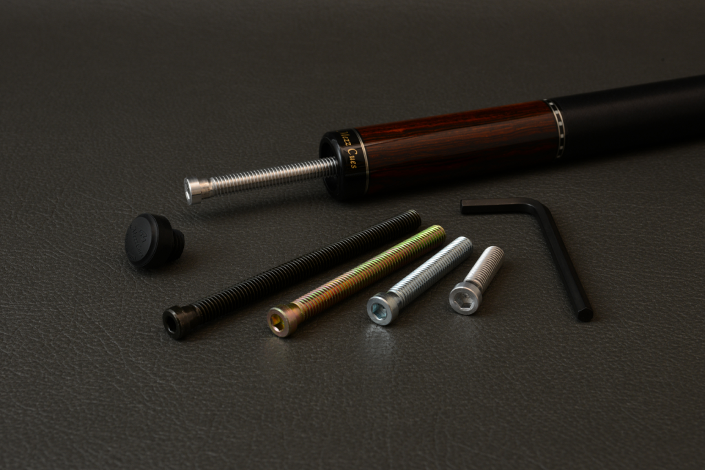 Mezz BWC butt weight bolt set allows precise adjustment of cue weight and balance.