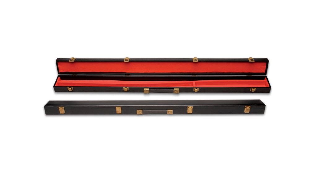 Laadukas salkkumallinen kovakotelo 3/4 snookerkepille. Plyyshiverhoilu.