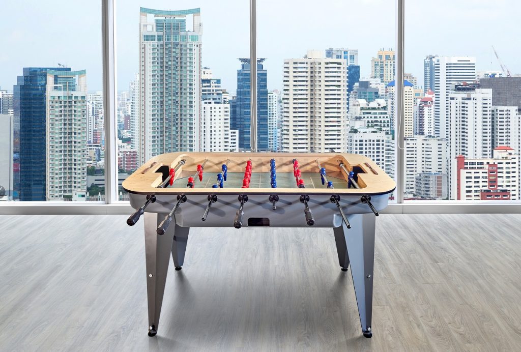 Artsball 5′ pöytäjalkapallopeli on uutuus, jossa yhdistyy tyylikäs moderni design vankkaan ja laadukkaaseen pöytäjalkapallopeliin! Artsball 5′ pöytäjalkapallopeli on visuaalisesti erittäin siro, mutta painoa on silti massiiviset 90 kg! Peliä on saatavana kolmessa värissä. Runko on vahvaa terästä ja pinta kaunista koivuvaneria. Artsball 5′ pöytäjalkapallopeli on laadukkaasti viimeistelty ja valmistettu. Ei lastulevyä eikä MDF:ää!