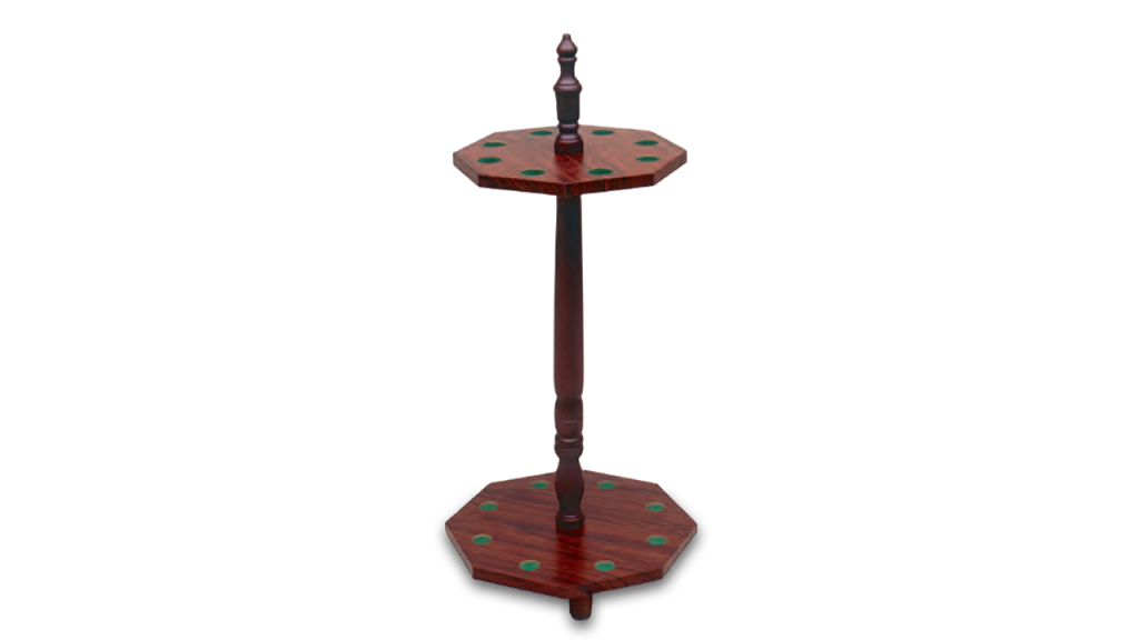 Puinen lattiamallinen biljardikeppiteline. Tilaa 8 biljardikepille.