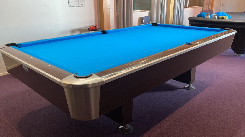 Hyväkuntoinen kotimainen Presidentti 9′ biljardipöytä 25 mm kivilevyllä. Pelialue 127 x 254 cm.