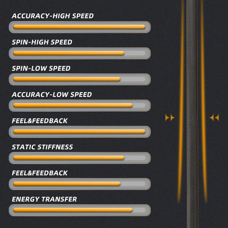 KONLLEN Low deflection hiilikuitusafti. on valmistettu lentokonehiilikuidusta, joka on kevyttä mutta erittäin vahvaa, jotta voimansiirto palloa lyötäessä on varmistettu ja lyöntituntuma on herkkä. Saftin pinta on erittäin sileä mutta kulutusta kestävä.