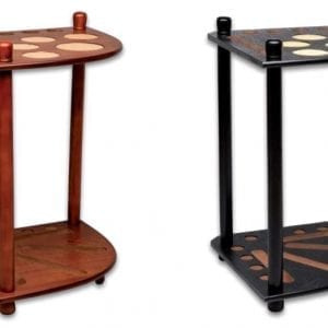 Puinen lattiateline huoneen nurkkaan. Tilaa 8 biljardikepille sekä palloille.