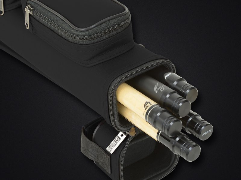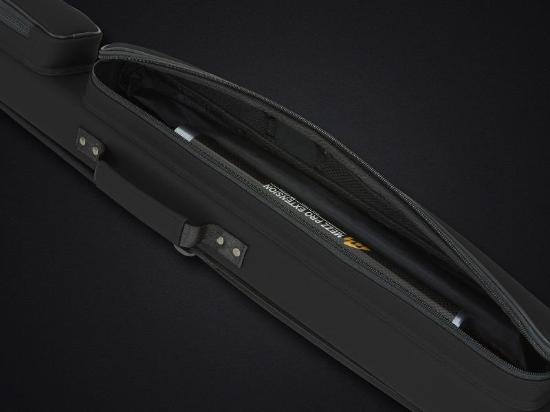 Mezzin kätevänkokoisessa 2/3 keppikotelossa on runsaasti tilaa arvokkaille pelivälineillesi. Tässä kotelossa keppisi ja tarvikeesi pysyvät hyvin suojassa sekä kulkevat tyylikkäästi ja kätevästi pelipaikoille. Koteloon mahtuu 2 buttia ja 3 saftia sekä kahteen isoon taskuun esim. Jatkovarsi ja tipintyöstövälineet.