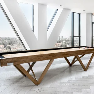 Vision pöytäcurling on suunniteltu sekä koti- että julkitilakäyttöön. Peli on valmistettu aidoista luonnollisista puumateriaalista ja värivaihtoehtoja on runsaasti. Pelialue on 40 mm paksua koivua, ja on pinnoitettu erikoislakalla. Pelialue on säädettävissä säätöruuveilla.