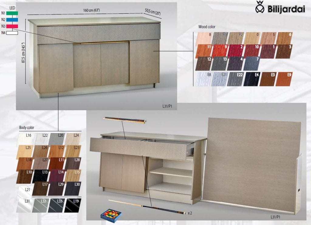 Ultra hylly on Bilijardain Pronto-sarjaan yhteensopiva kaluste, jossa voit säilyttää biljarditarvikkeita ja ulosvedettävässä osassa myös biljardipöytäsi kantta. Hinta ei sisällä peitekantta. Mitat: 88 x 50 x 160 cm.