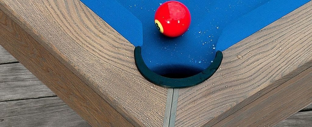 Vision Outdoor biljardipöytä on valmistettu öljyllä kyllästetystä vettä imemättömästä tammesta, ja verka on vettähylkivä. Riittää kun pöydän puuosat öljyää parin vuoden välein kuten puiset terassikalusteet. Suorassa auringonpaisteessa on puuosat syytä käsitellä vuosittain kahdella kerroksella puuöljyä.