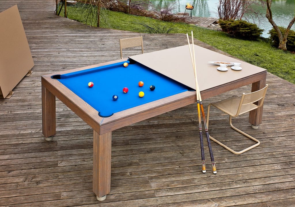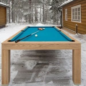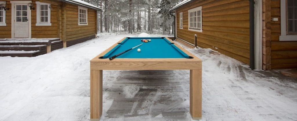 Lisähintaan säänkestävä ruokapöytäkansi, jolloin Vision Outdoor biljardipöydässä yhdistyvät laadukkaan ruokapöydän ja korkeatasoisen kivibiljardin ominaisuudet.