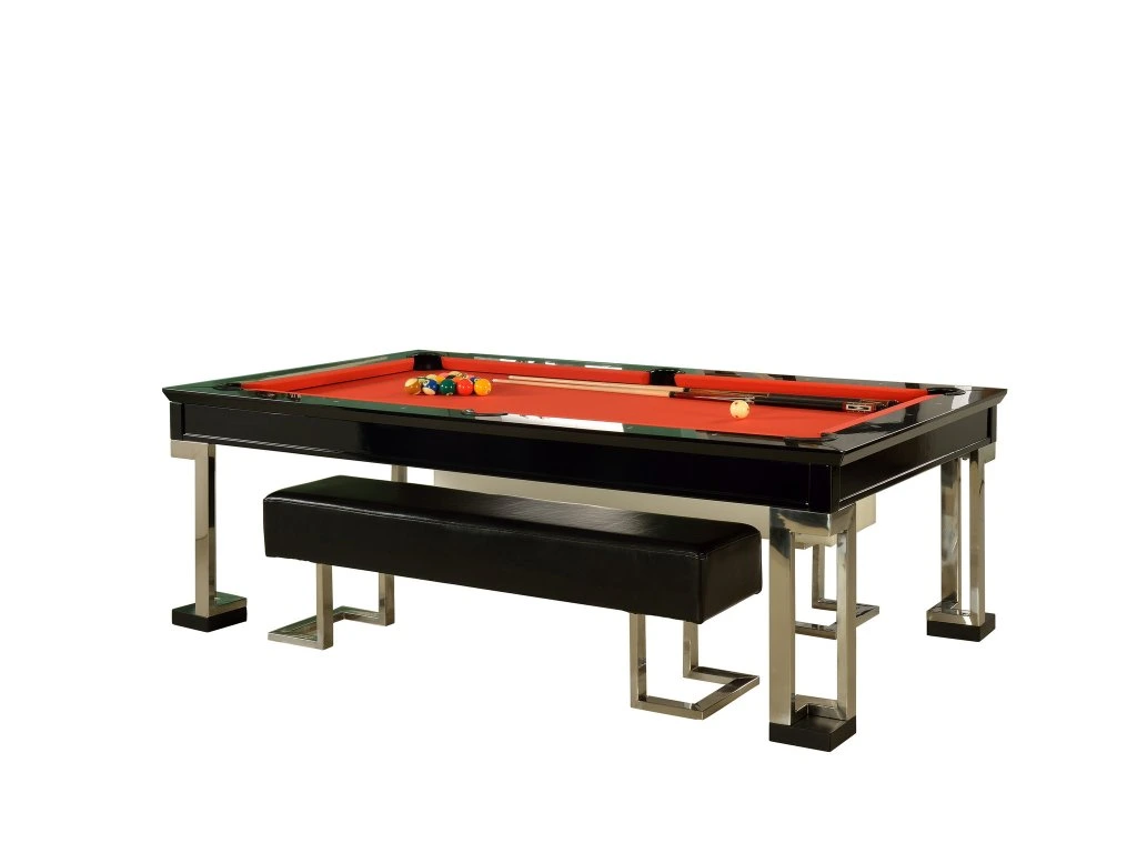 Täydellinen yhdistelmä ruokapöytää ja biljardipöytää.